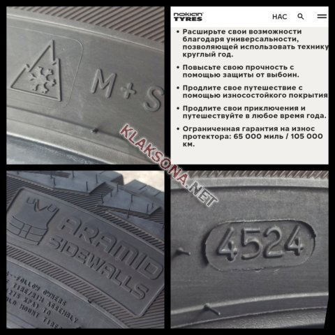 Комплект шин NOKIAN OUTPOST APT. Дата выпуска 45-я неделя 2024 года (конец года). Размер 225/65/R17 СОСТОЯНИЕ НОВЫХ! Шины ПРЕМИУМ сегмента для комфортной и уверенной эксплуатации в любых дорожных условиях с увеличенным ресурсом и увеличенной топливной экономичностью. Заводская гарантия - 105 тыс. км. (см. фото) Цена за комплект данных шин в магазине - 800 $ (см. фото). Подробную информацию о данных шинах можно прочитать на фото. В объявлении указана цена за комплект из 4 единиц