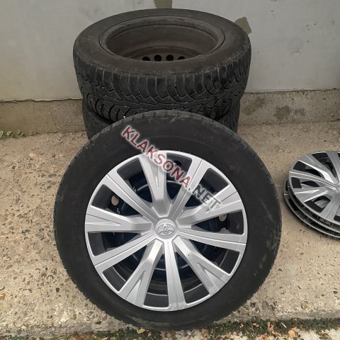 Продам комплект железных дисков с колпаками и резиной. 2 колеса отличных, 2 немного бьют. Размер 205.60.16, разболтовка 5*114.3.